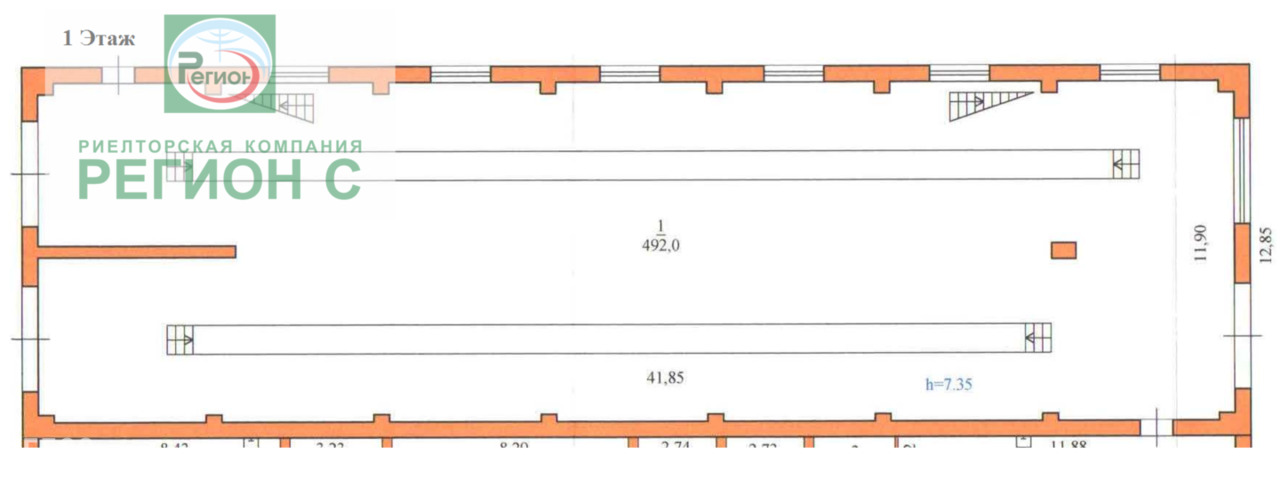 - 1 этаж - 492 кв.м. Ворота (4 шт) - обеспечивают сквозной проезд. Есть смотровые ямы. В здании проведена вода (раньше использовалась, как автомойка). Чисто и сухо. Помещение с отоплением. Высота потолков - 7,35 м.