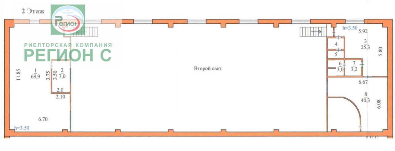 - 2 этаж - 154.4 кв.м. - помещение под склад, мастерские, раздевалки, хозпомещения.