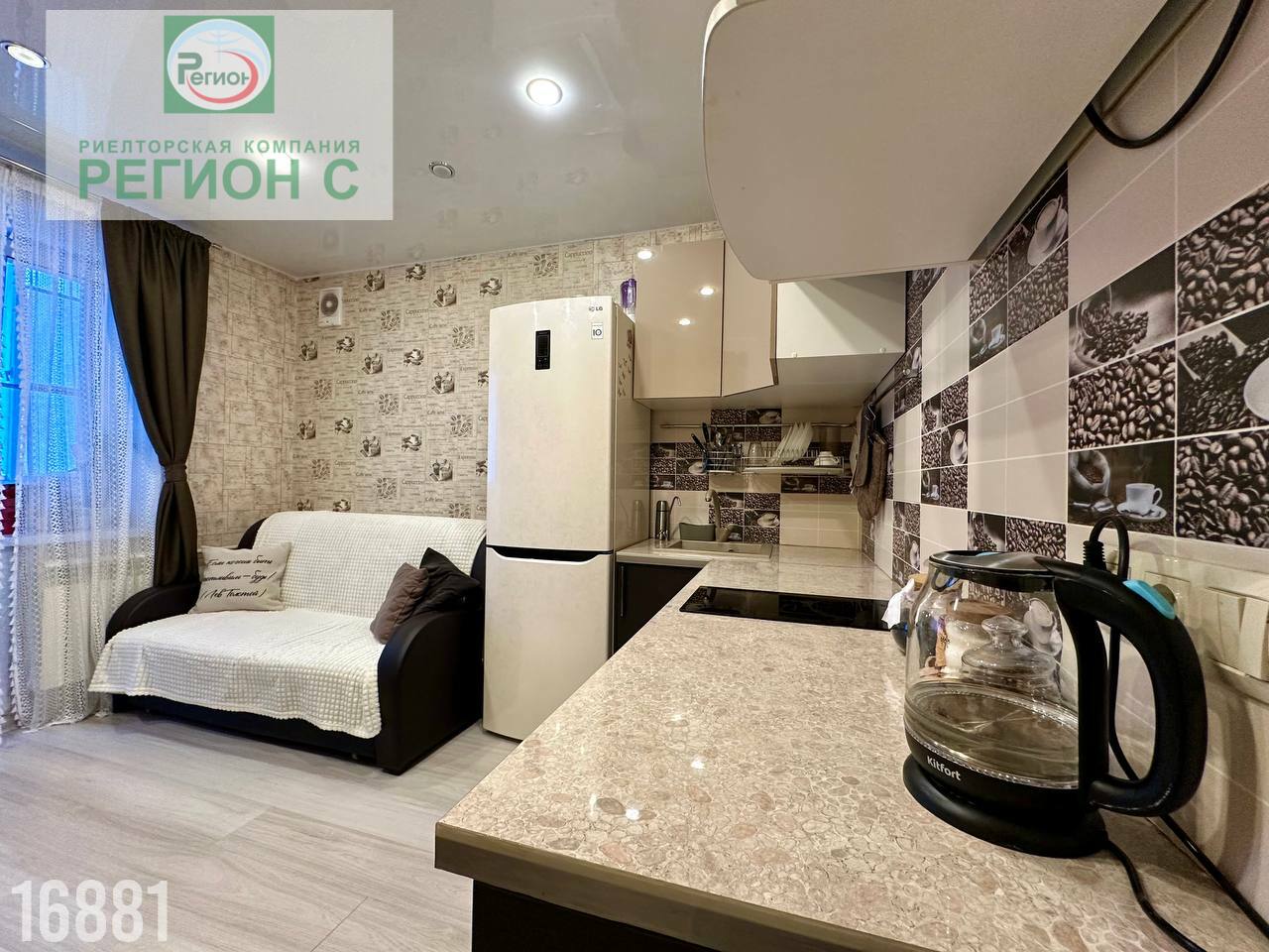Кухня невероятно уютная, с выходом на балкон. Выполнен качественный ремонт, остается только заехать и наслаждаться жизнью.
