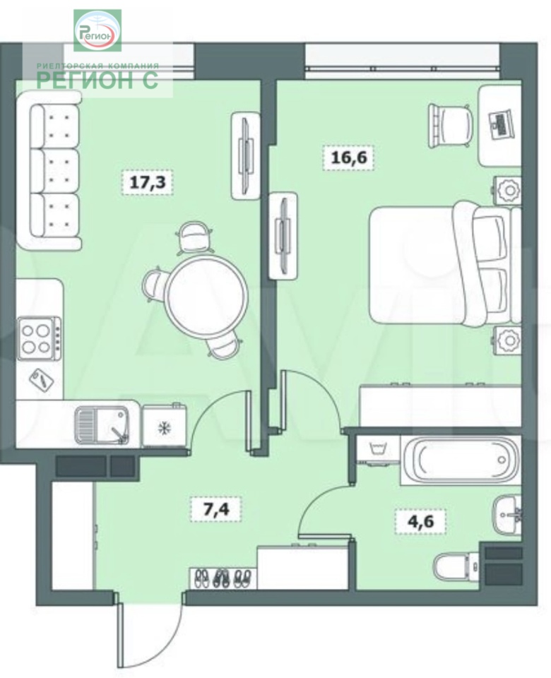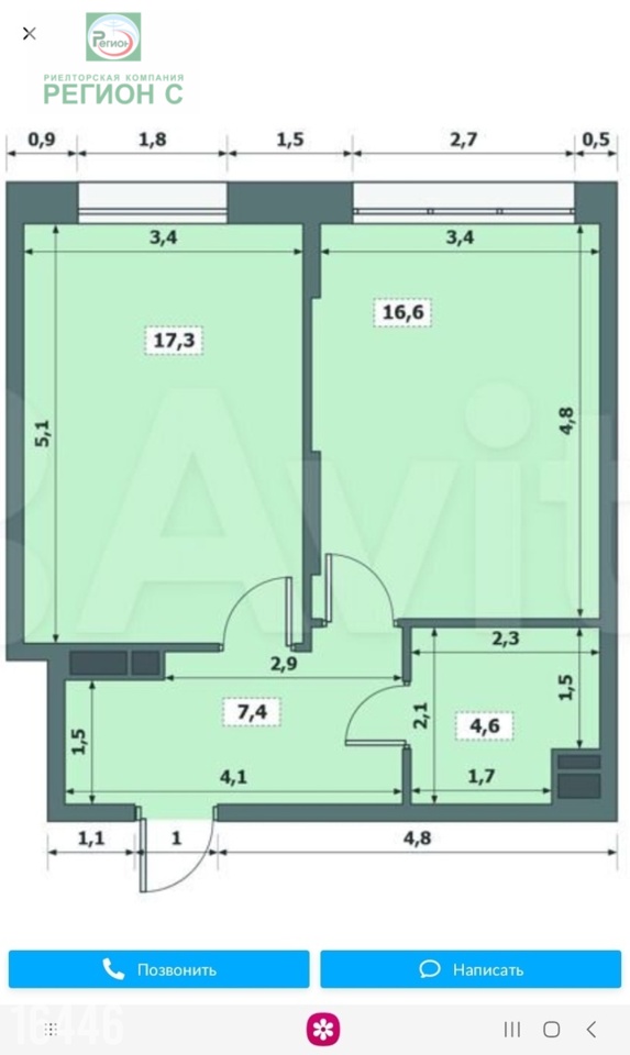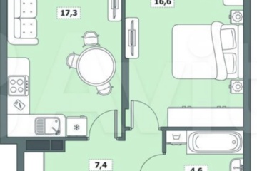Общая площадь 46, теплая лоджия 4,8 м к.