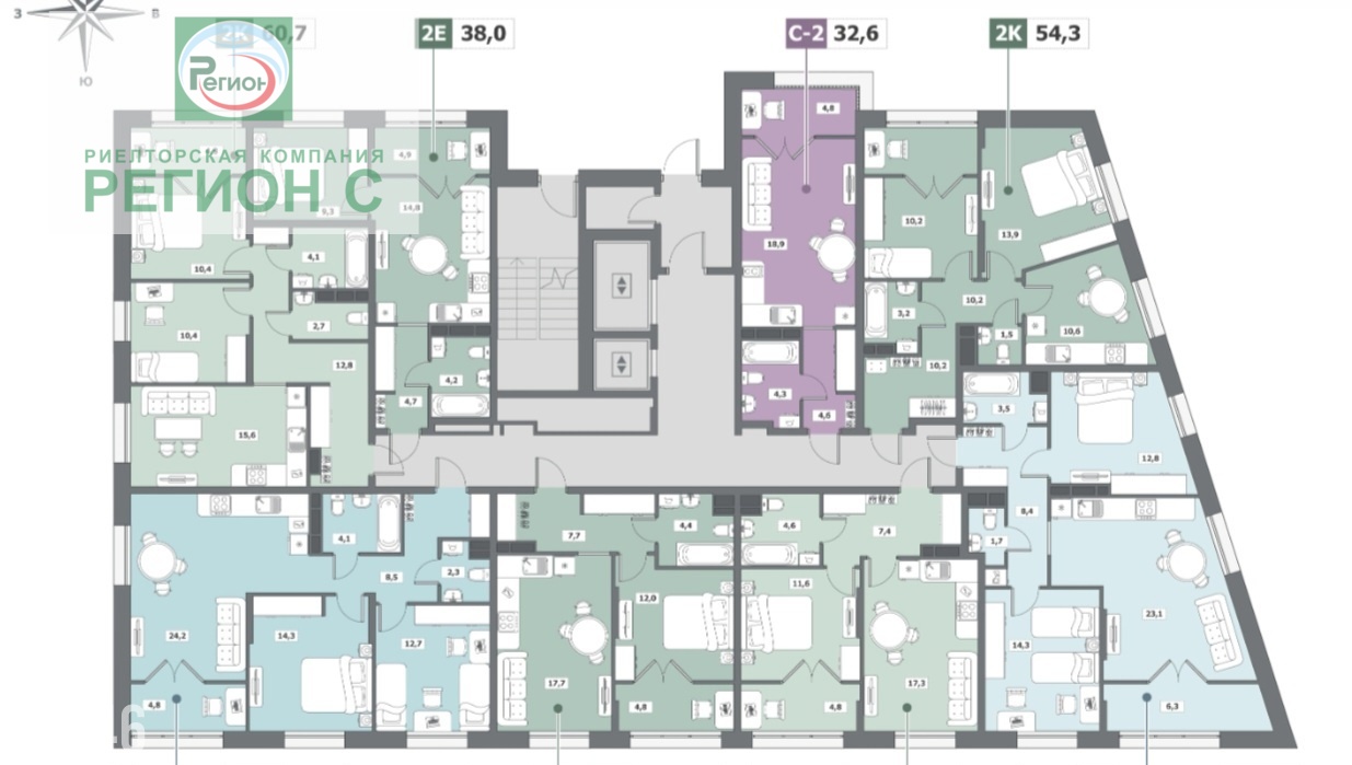 Евро двухкомнатная квартира на 13 этаже монолитного дома в центре Архангельска