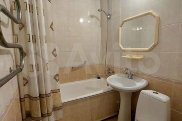 Санузел совмещенный (2,8 м²), подготовлены отводы для подключения стиральной машины, раздельные краны на ванну и раковину. Выполнен косметический ремонт.