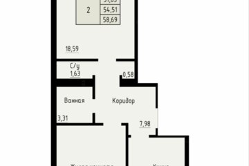 ✅ Жилая зона — целых 54 м²: два просторных изолированных помещения для реализации ваших интерьерных фантазий и комфортного проживания всей семьи.